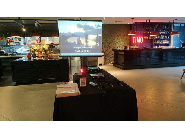 Se precisar levamos também uma mesa para colocar TV, aparelho de videokê, microfones, ...